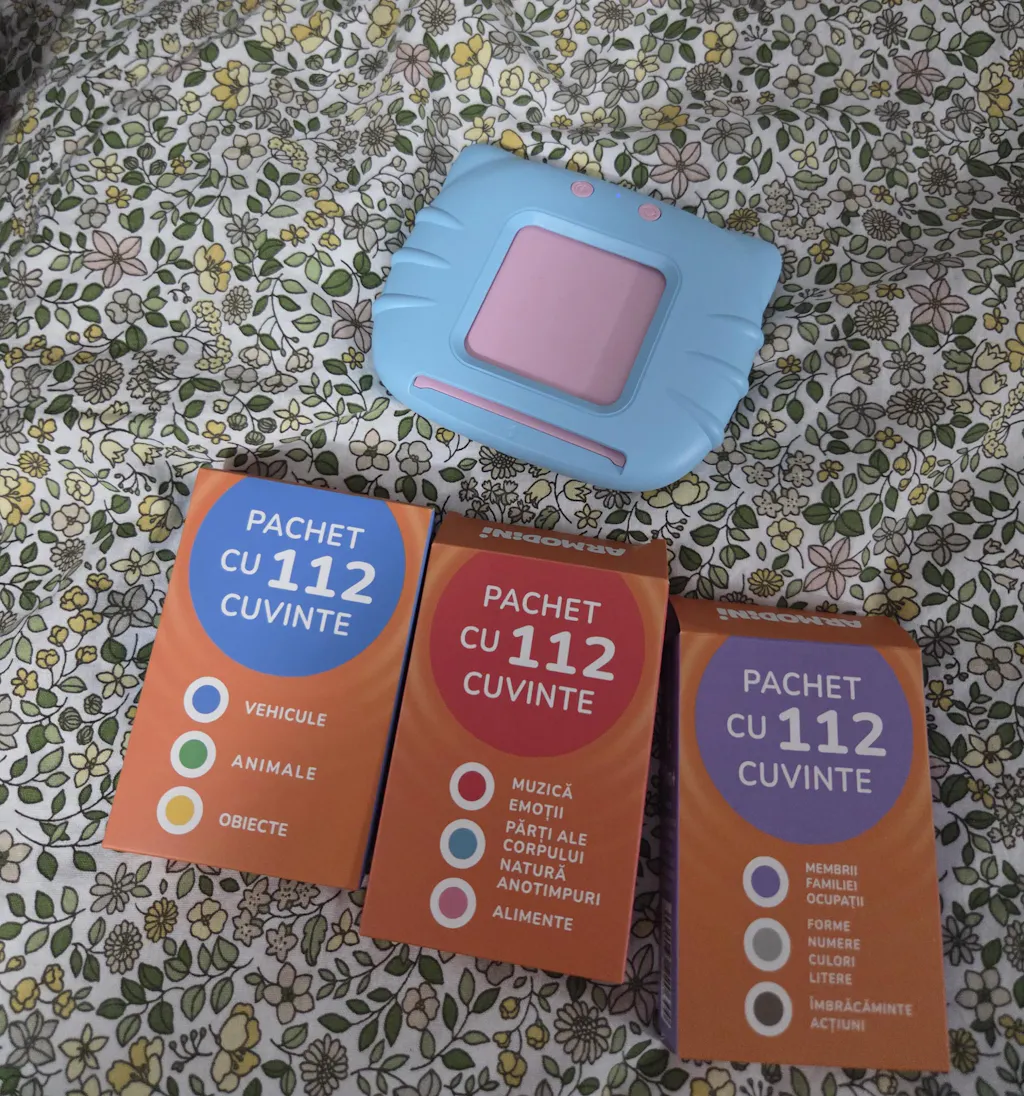 Fetița mea a fost încântată de cadoul pentru Crăciun. A început să lege cuvinte( un an și 7 luni) și îl folosim în special în deplasările cu mașina. Am comandat toate trei seturile de carduri. Recomand cu încredere pune și copilul și adultul la treabă. Să lăsăm telefoanele ca toți bebelușii, adulții și copiii sunt cu ochii în telefon la restaurant , în parc și în public.